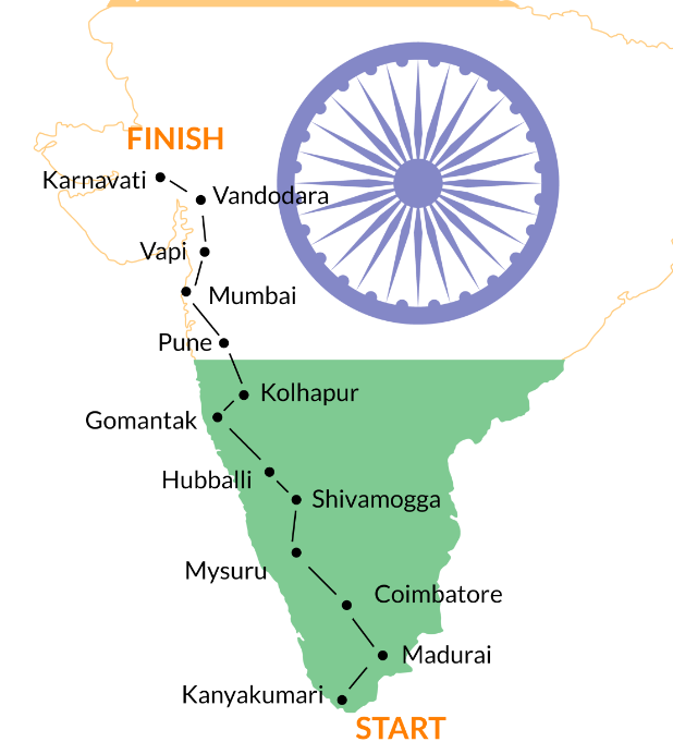 Driving rickshaws all the way from the most southern tip of India (Kanyakumari), right up to Ahmedabad in the northwest, the “Rickshaw Runners” travelled over a period of 12 days, stopping at various cities along the way.